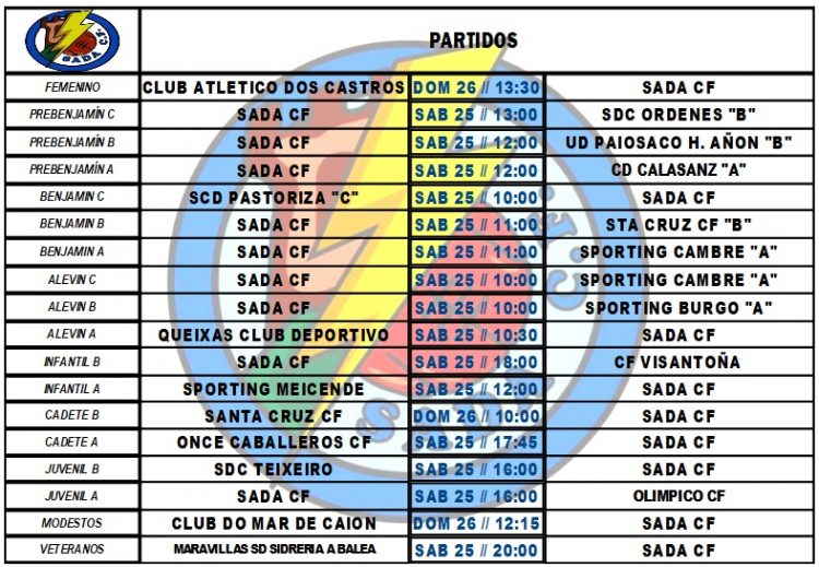 PARTIDOS FIN DE SEMANA HorariosBy Sada Cf22/01/2020Partidos a disputar por nuestros equipos en el fin de semana.