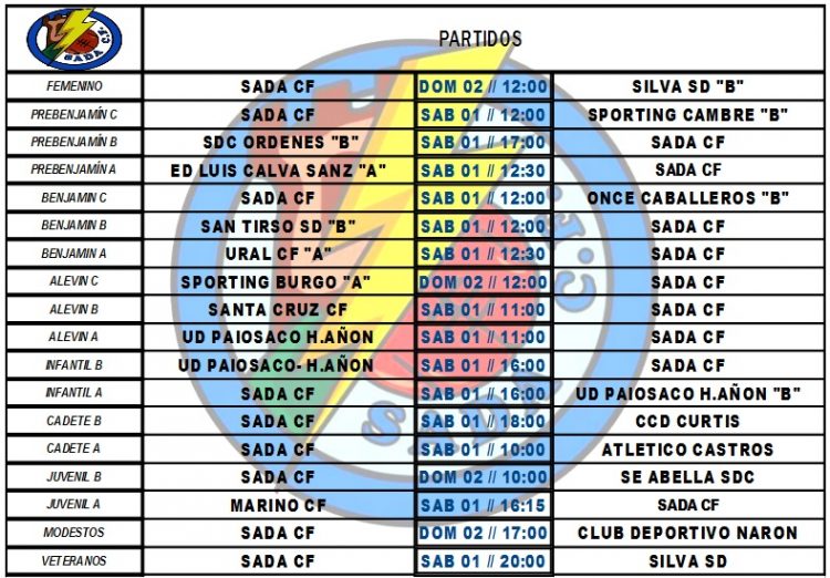 PARTIDOS FIN DE SEMANA HorariosBy Sada Cf29/01/2020Partidos a disputar por nuestros equipos en el fin de semana.