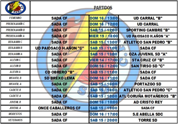 PARTIDOS FIN DE SEMANA HorariosBy Sada Cf12/02/2020Partidos a disputar por nuestros equipos en el fin de semana.