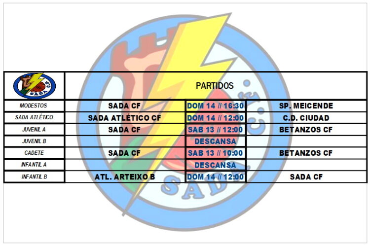 PARTIDOS OFICIALES FIN DE SEMANA HorariosBy Sada Cf10/11/2021Partidos a disputar por nuestros equipos en el fin de semana.