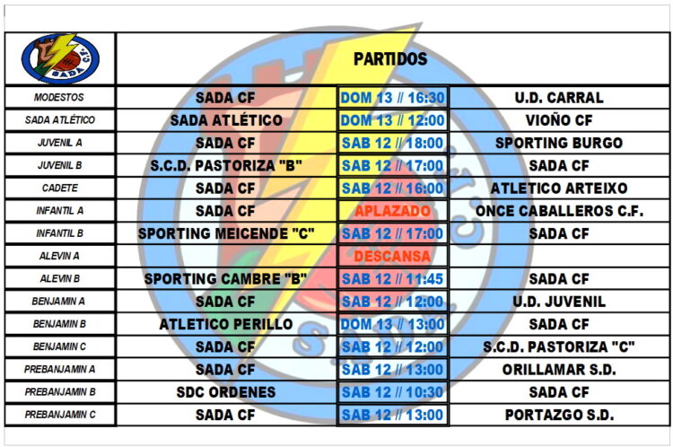 PARTIDOS OFICIALES FIN DE SEMANA HorariosBy Sada Cf09/02/2022Partidos a disputar por nuestros equipos en el fin de semana.