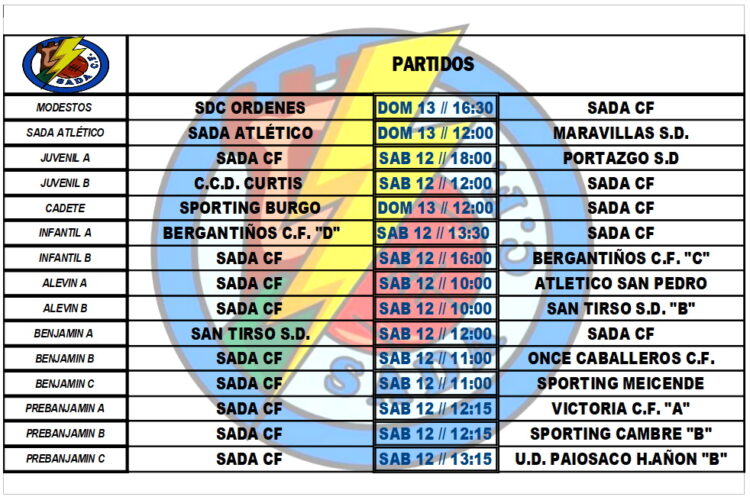 PARTIDOS OFICIAIS PARA ESTA FIN DE SEMANA HorariosBy Sada Cf08/03/2022Partidos a disputar por nuestros equipos en el fin de semana.