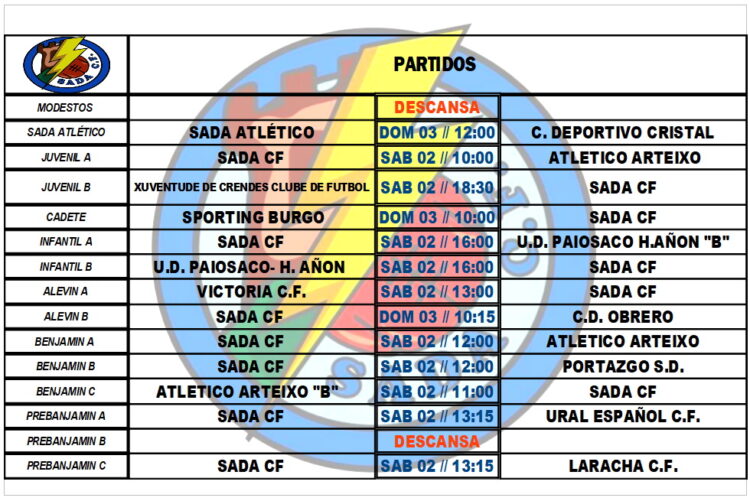 PARTIDOS OFICIAIS PARA ESTA FIN DE SEMANA HorariosBy Sada Cf30/03/2022Partidos a disputar por nuestros equipos en el fin de semana.