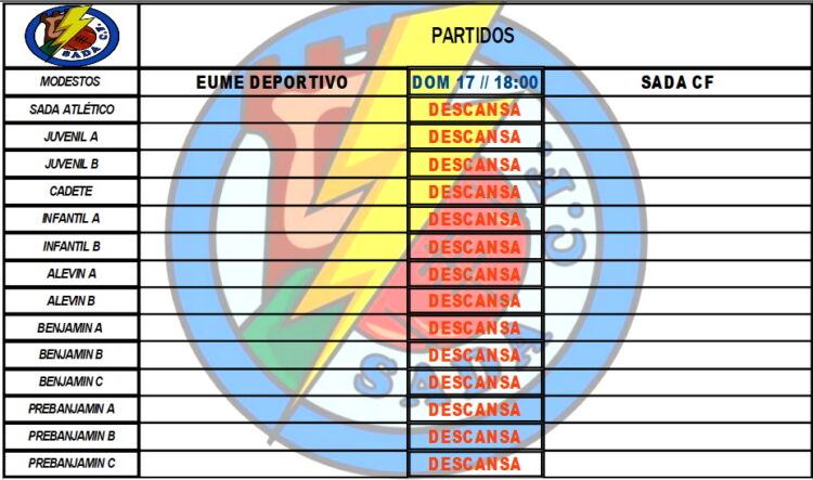 PARTIDOS OFICIAIS PARA ESTA FIN DE SEMANA HorariosBy Sada Cf12/04/2022Partidos a disputar por nuestros equipos en el fin de semana.