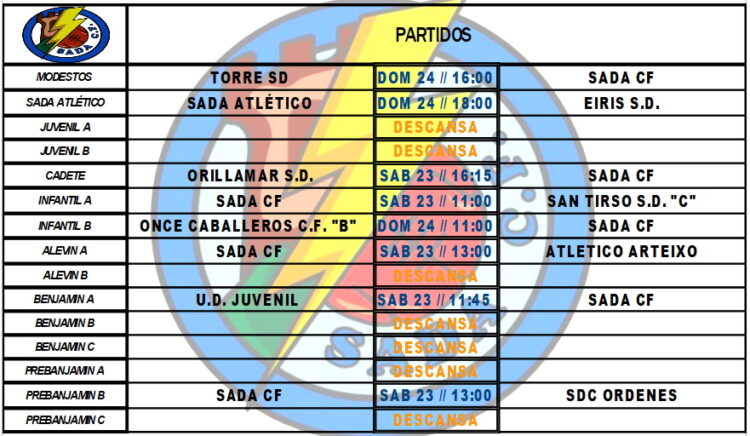 PARTIDOS OFICIAIS PARA ESTA FIN DE SEMANA HorariosBy Sada Cf20/04/2022Partidos a disputar por nuestros equipos en el fin de semana.