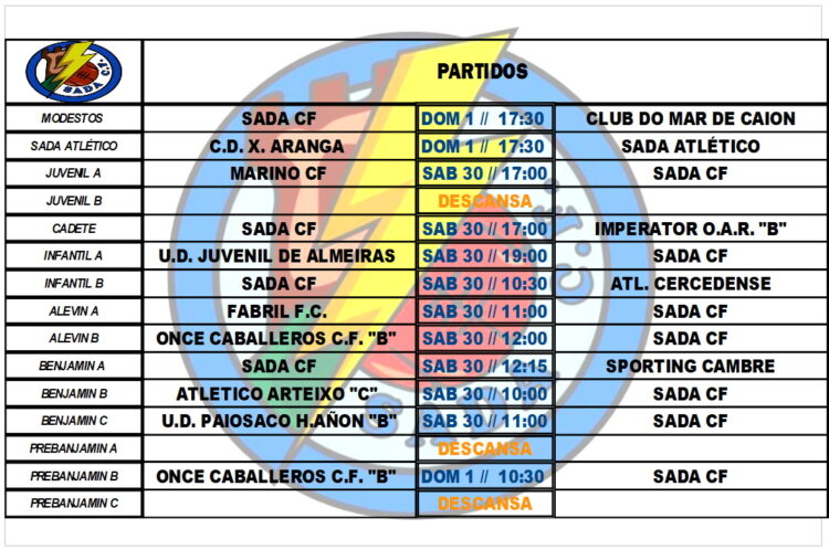 PARTIDOS OFICIAIS PARA ESTA FIN DE SEMANA HorariosBy Sada Cf26/04/2022Partidos a disputar por nuestros equipos en el fin de semana.