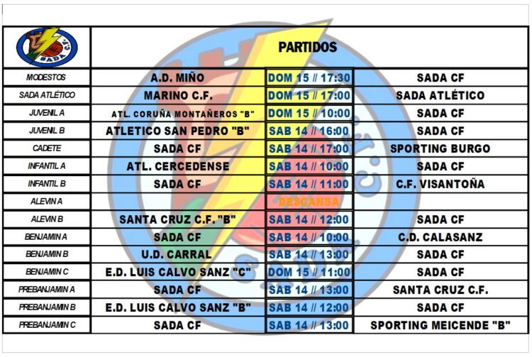 PARTIDOS OFICIAIS PARA ESTA FIN DE SEMANA HorariosBy Sada Cf10/05/2022Partidos a disputar por nuestros equipos en el fin de semana.