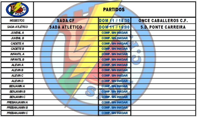 PARTIDOS OFICIAIS PARA ESTA FIN DE SEMANA HorariosBy Sada Cf06/09/2022Partidos a disputar polos nosos equipos na fin de semana.