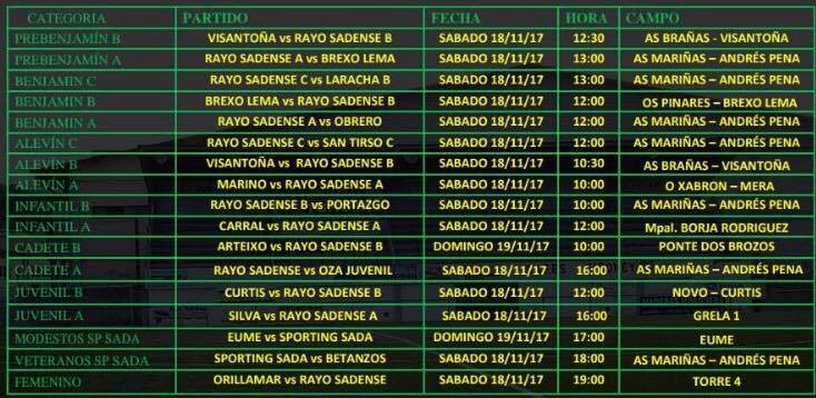 Pasamos a informaros de los horarios de nuestros equipos para este próximo Fin de Semana.