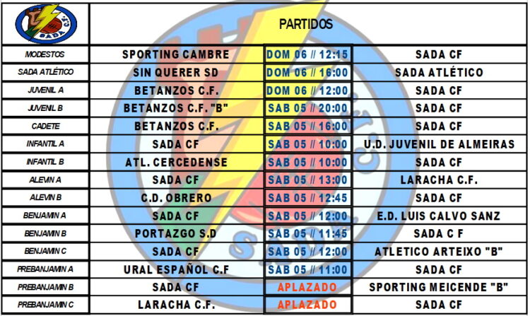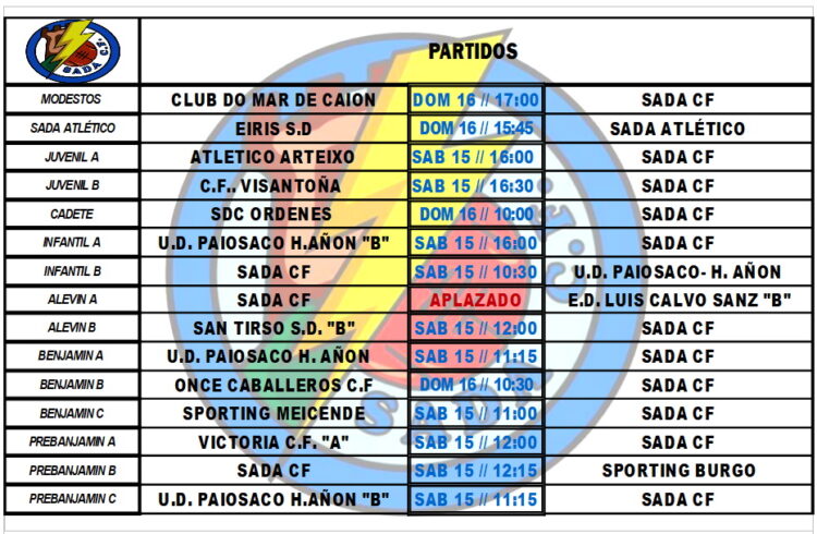 Partidos a disputar por nuestros equipos en el fin de semana.