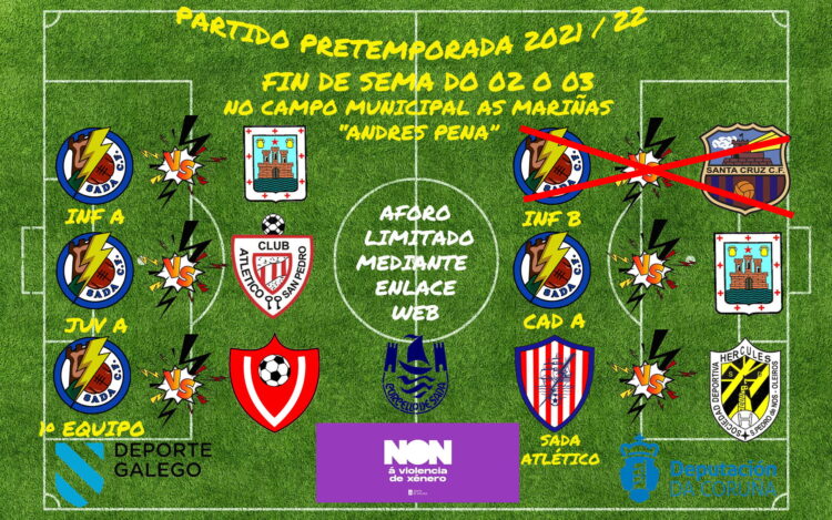 Continuando con los partidos preparatorios del club en el campo de As Mariñas «Andres Pena» SABADO 16 10 HORAS INF A – OZA JUVENILSABADO 16 12 HORAS CAD A – ONCE CABALLEROSSABADO 16 18 HORAS JUV A – OZA JUVENIL