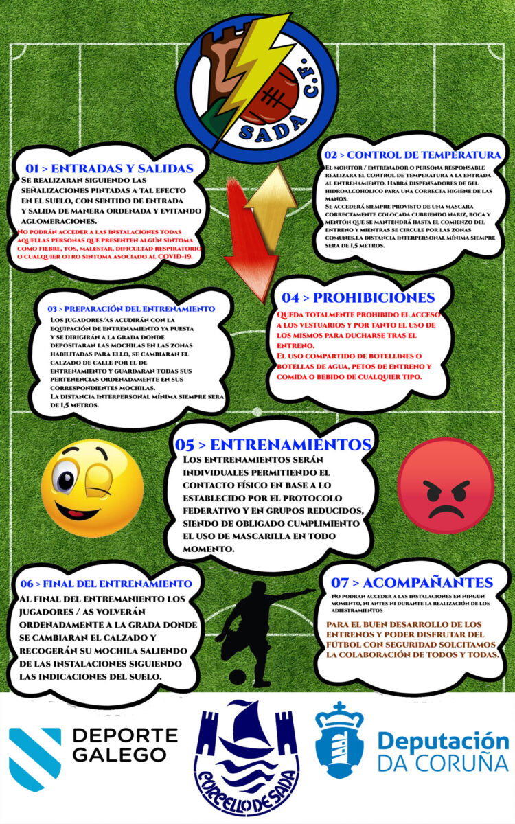 Tras la actualización de protocolos COVID-19 y adaptacion a los mismos del Campo Municipal de As Mariñas «Andrés Pena», el Sada Cf dará comienzo a las fases de adaptación y entreno en las siguientes fechas: PAGO DE MATRICULA: (requisito indispensable para el inicio de actividades de los jugadores de todos los equipos):En las oficinas sitas…