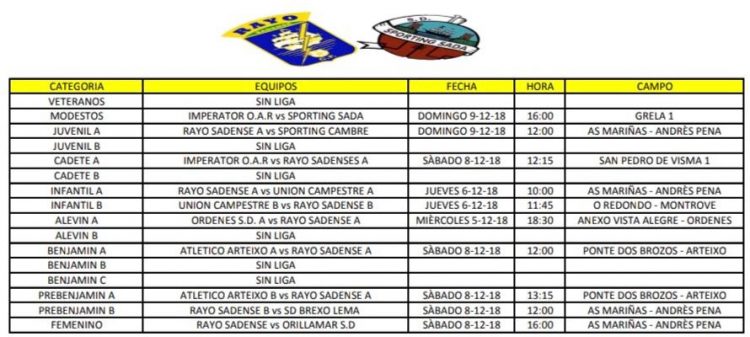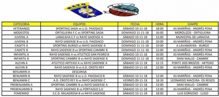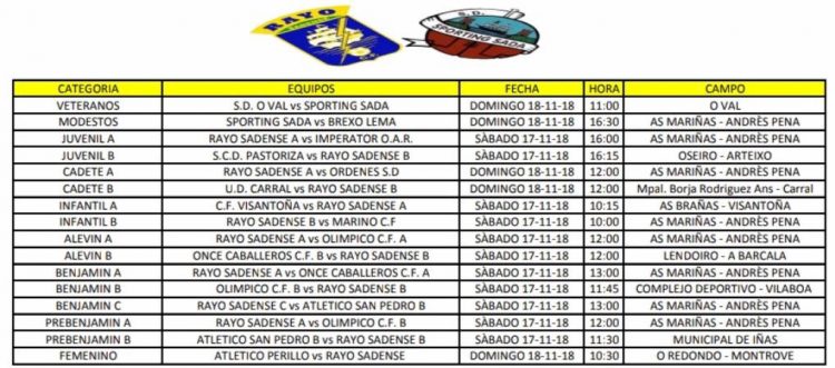 Informamos de los partidos a disputar este fin de semana por nuestros equipos