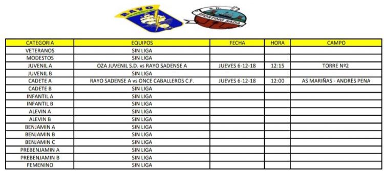 Informamos de los partidos a disputar este puente por nuestros equipos