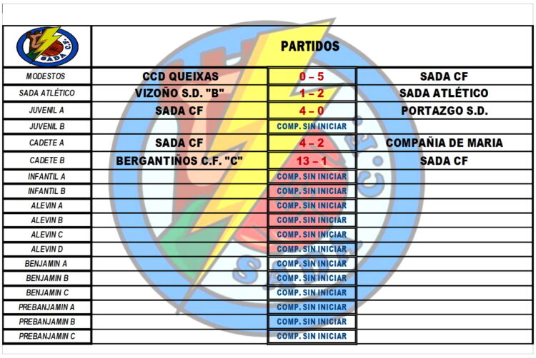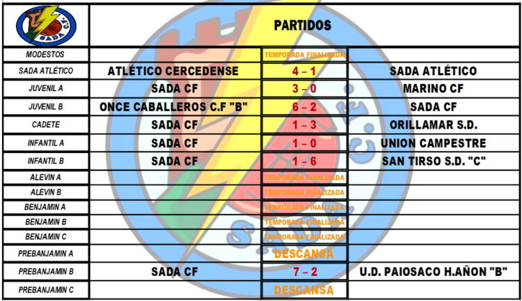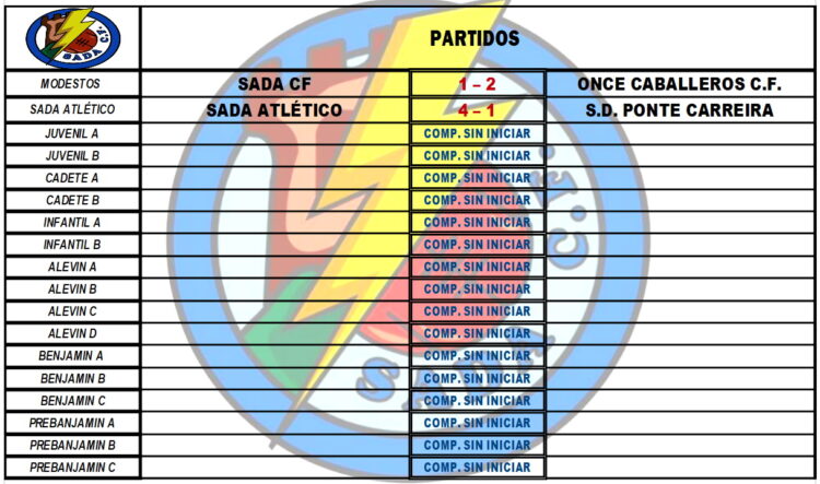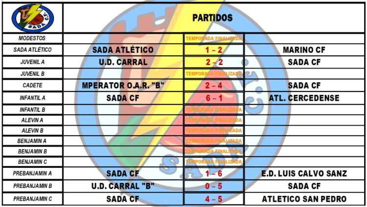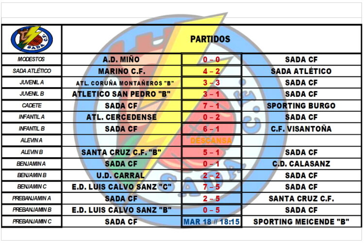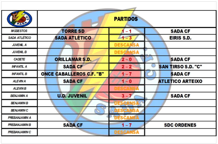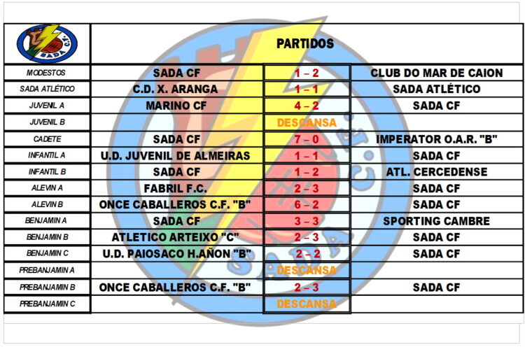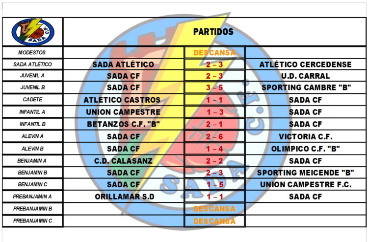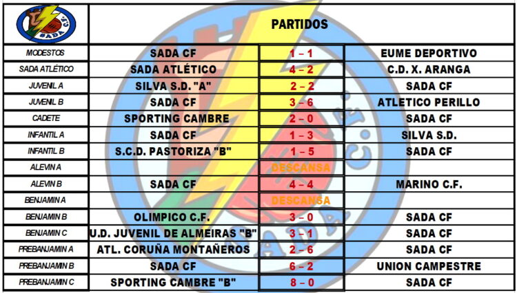 CADRO DE RESULTADOS DOS PARTIDOS DESTA FIN DE SEMANA.