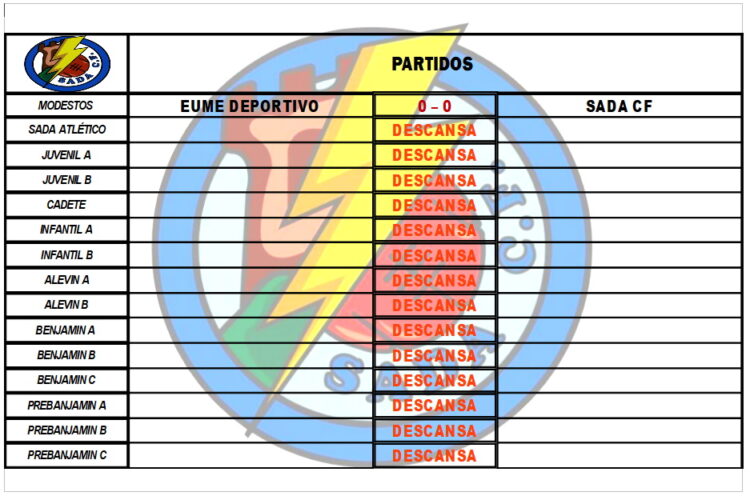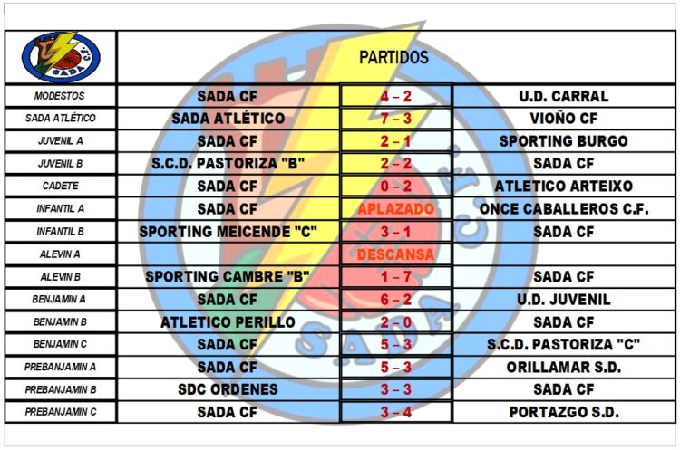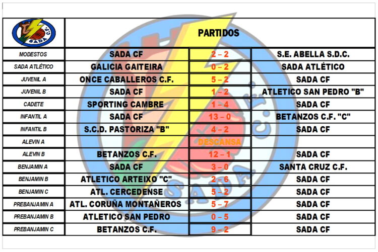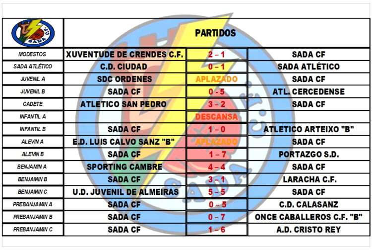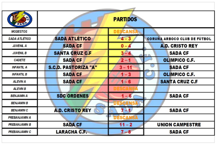 CADRO DE RESULTADOS DOS PARTIDOS DESTA FIN DE SEMANA.