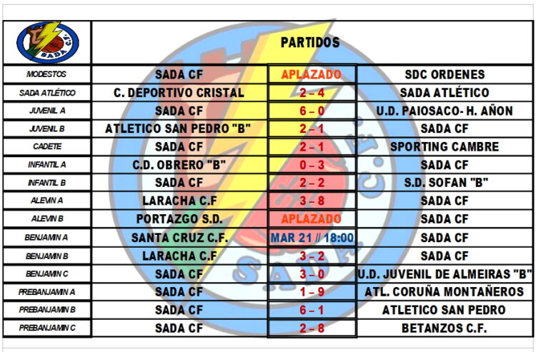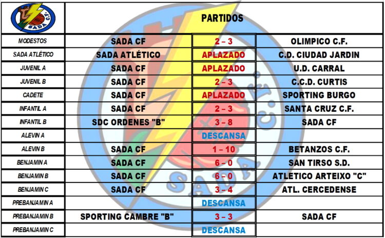 Tabla de resultados de los partidos disputados en jornada especial de navidad ResultadosBy Sada Cf08/12/2021