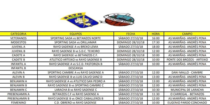 Oct242018ComunicaciónInformamos de los partidos a disputar este fin de semana por nuestros equipos Category: Comunicación24/10/2018 Compartir esta publicación Share on FacebookShare on Facebook Share on XShare on X Share on LinkedInShare on LinkedIn Share on WhatsAppShare on WhatsApp Author: Sada Cf Post navigationPreviousPrevious post:HORARIOS FIN DE SEMANA PARTIDOSNextNext post:HORARIOS FIN DE SEMANA PARTIDOS EN CASAOtras noticias¡¡¡¡¡¡¡¡¡⚽⚽⚽CONVOCATORIA ASAMBLEA XERAL ORDINARIA⚽⚽⚽!!!!!!!!11/10/2024¡¡¡¡¡¡¡¡¡⚽⚽⚽CONVOCATORIA ASAMBLEA XERAL ORDINARIA⚽⚽⚽!!!!!!!!25/09/2024¡¡¡¡¡¡¡¡¡⚽⚽⚽CONVOCATORIA ASAMBLEA XERAL EXTRAORDINARIA⚽⚽⚽!!!!!!!!18/08/2023DEPORCAMPUS 2022 SADA CF14/12/2022¡¡¡¡¡¡¡¡¡⚽⚽⚽CONVOCATORIA ASAMBLEA XERAL ORDINARIA⚽⚽⚽!!!!!!!!21/09/2022¡¡¡¡¡¡¡¡¡⚽🎊 FESTAS DE SAN ROQUE 2022 🎊⚽!!!!!!!!31/08/2022
