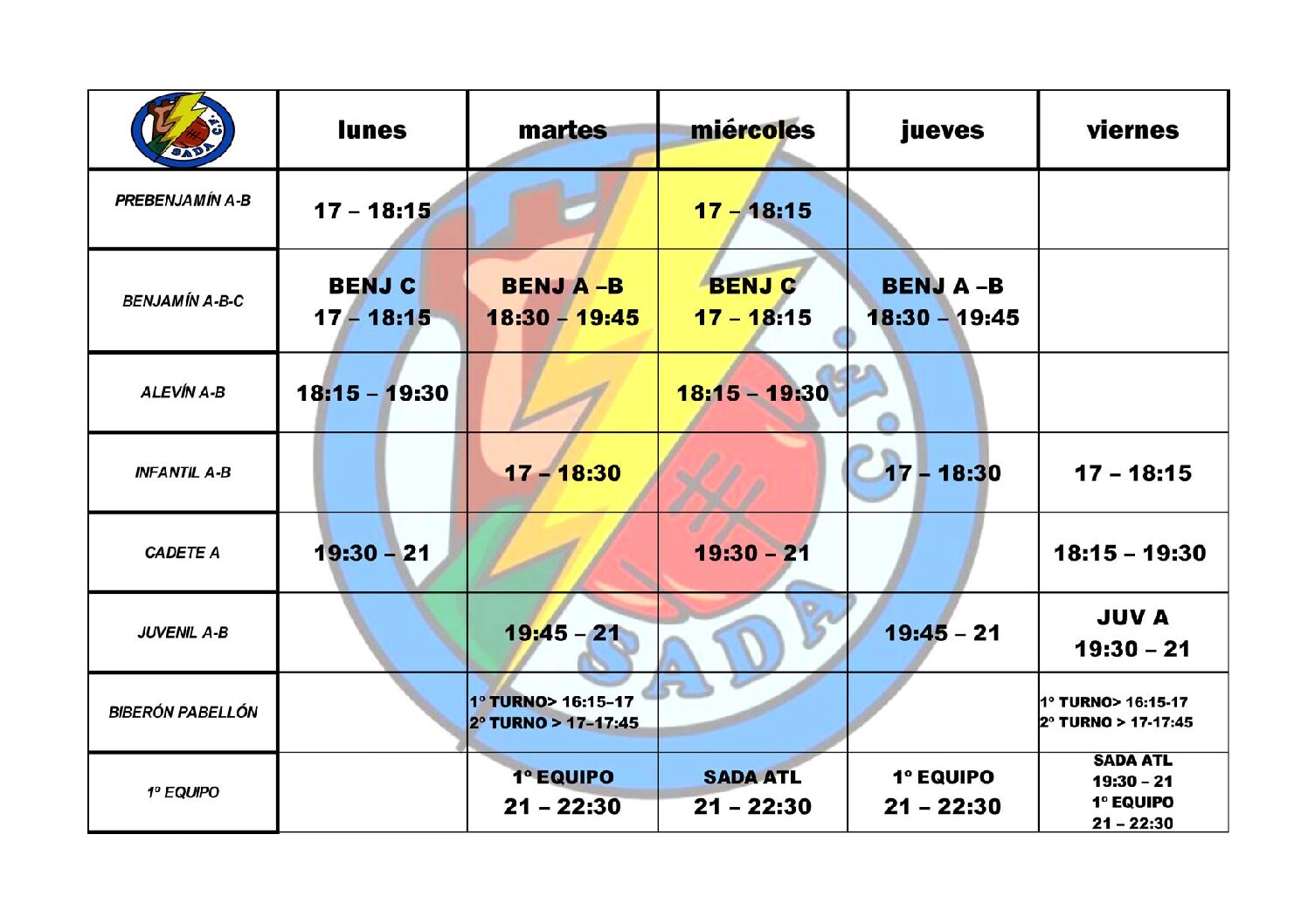 Con motivo del inicio de la preparación de la nueva Temporada 2021/2022, se adjunta cuadro de horarios provisionales de entrenamientos, para info de jugadores / madres y padres de las diferentes categorías.