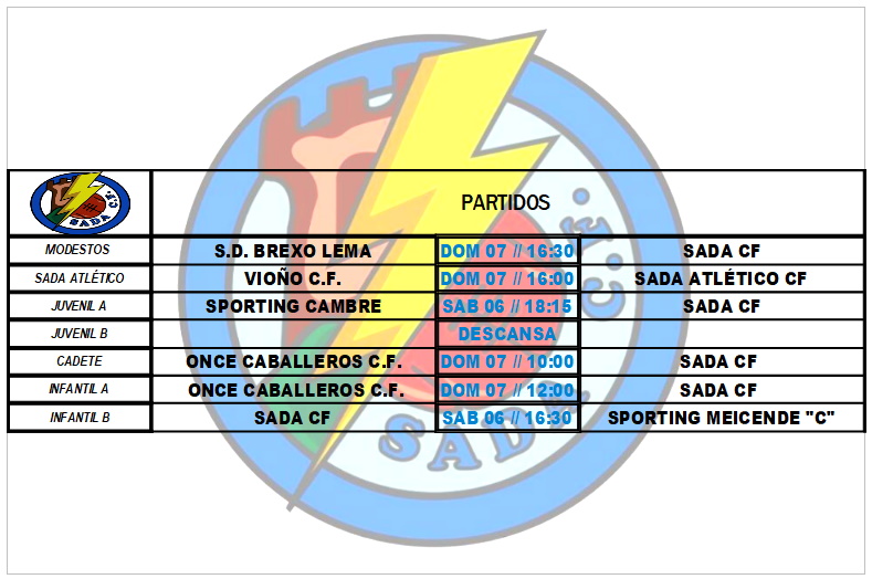 Nov32021Horarios Partidos a disputar por nuestros equipos en el fin de semana. Category: Horarios03/11/2021 Compartir esta publicación Share on FacebookShare on Facebook Share on XShare on X Share on LinkedInShare on LinkedIn Share on WhatsAppShare on WhatsApp Author: Sada Cf Post navigationPreviousPrevious post:¡¡¡¡¡¡¡¡¡⚽⚽⚽PROMOCIÓN ESPECIAL⚽⚽⚽!!!!!!!!NextNext post:Tabla de resultados de los partidos disputados este fin de semana.Otras noticiasPARTIDOS OFICIAIS PARA ESTA FIN DE SEMANA20/09/2022PARTIDOS OFICIAIS PARA ESTA FIN DE SEMANA13/09/2022PARTIDOS OFICIAIS PARA ESTA FIN DE SEMANA06/09/2022PARTIDOS OFICIAIS PARA ESTA FIN DE SEMANA22/06/2022PARTIDOS OFICIAIS PARA ESTA FIN DE SEMANA14/06/2022PARTIDOS OFICIAIS PARA ESTA FIN DE SEMANA07/06/2022
