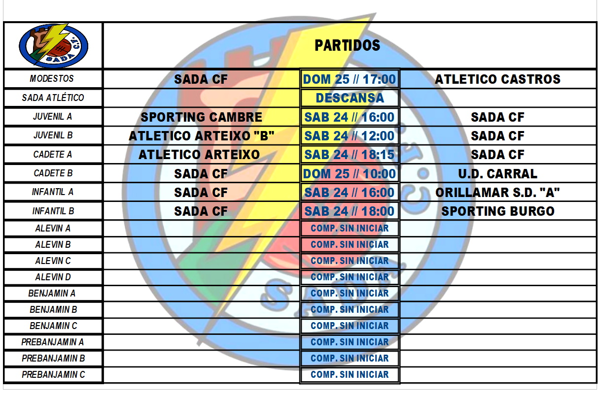 Sep202022Horarios Partidos a disputar polos nosos equipos na fin de semana. Category: Horarios20/09/2022 Compartir esta publicación Share on FacebookShare on Facebook Share on XShare on X Share on LinkedInShare on LinkedIn Share on WhatsAppShare on WhatsApp Author: Sada Cf Post navigationPreviousPrevious post:CADRO DE RESULTADOS DOS PARTIDOS DESTA FIN DE SEMANA.NextNext post:¡¡¡¡¡¡¡¡¡⚽⚽⚽CONVOCATORIA ASAMBLEA XERAL ORDINARIA⚽⚽⚽!!!!!!!!Otras noticiasPARTIDOS OFICIAIS PARA ESTA FIN DE SEMANA13/09/2022PARTIDOS OFICIAIS PARA ESTA FIN DE SEMANA06/09/2022PARTIDOS OFICIAIS PARA ESTA FIN DE SEMANA22/06/2022PARTIDOS OFICIAIS PARA ESTA FIN DE SEMANA14/06/2022PARTIDOS OFICIAIS PARA ESTA FIN DE SEMANA07/06/2022PARTIDOS OFICIAIS PARA ESTA FIN DE SEMANA31/05/2022