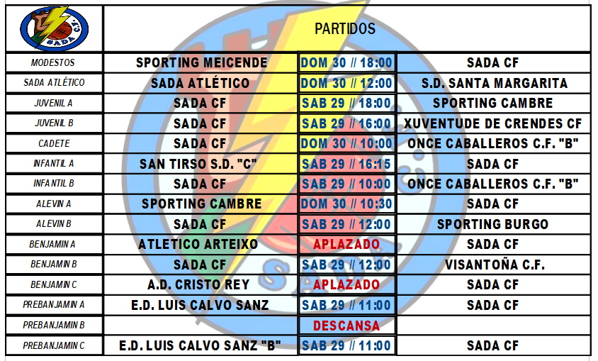 Ene262022Horarios Partidos a disputar por nuestros equipos en el fin de semana. Category: Horarios26/01/2022 Compartir esta publicación Share on FacebookShare on Facebook Share on XShare on X Share on LinkedInShare on LinkedIn Share on WhatsAppShare on WhatsApp Author: Sada Cf Post navigationPreviousPrevious post:Tabla de resultados de los partidos disputados este fin de semana.NextNext post:D.E.P. DANIEL RODRÍGUEZ FERNÁNDEZOtras noticiasPARTIDOS OFICIAIS PARA ESTA FIN DE SEMANA20/09/2022PARTIDOS OFICIAIS PARA ESTA FIN DE SEMANA13/09/2022PARTIDOS OFICIAIS PARA ESTA FIN DE SEMANA06/09/2022PARTIDOS OFICIAIS PARA ESTA FIN DE SEMANA22/06/2022PARTIDOS OFICIAIS PARA ESTA FIN DE SEMANA14/06/2022PARTIDOS OFICIAIS PARA ESTA FIN DE SEMANA07/06/2022